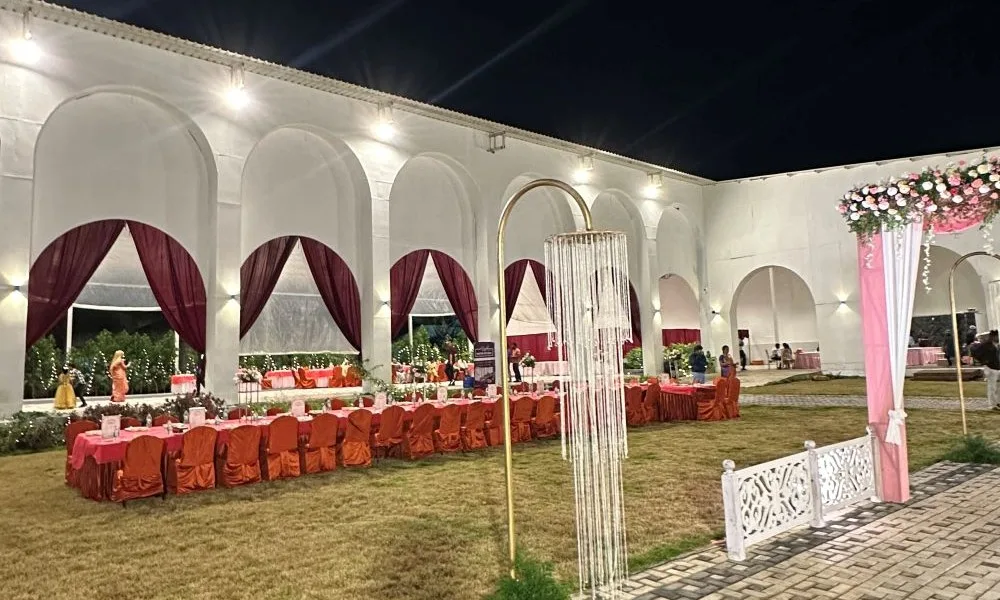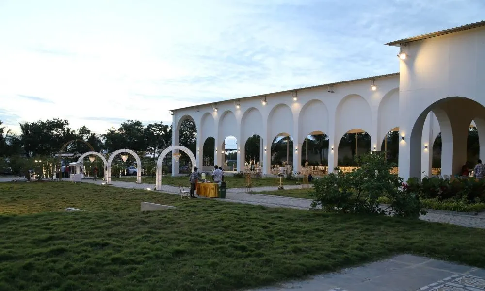 When it comes to your big day, you deserve nothing short of extraordinary. Nestled in the serene outskirts of Bangalore on Airport Road, Crown Estate is the perfect destination wedding venue that seamlessly blends grandeur with tranquility. Spread across 4 sprawling acres of lush greenery, this stunning resort is more than just a wedding venue—it’s the canvas for the fairytale celebration you’ve always dreamed of.